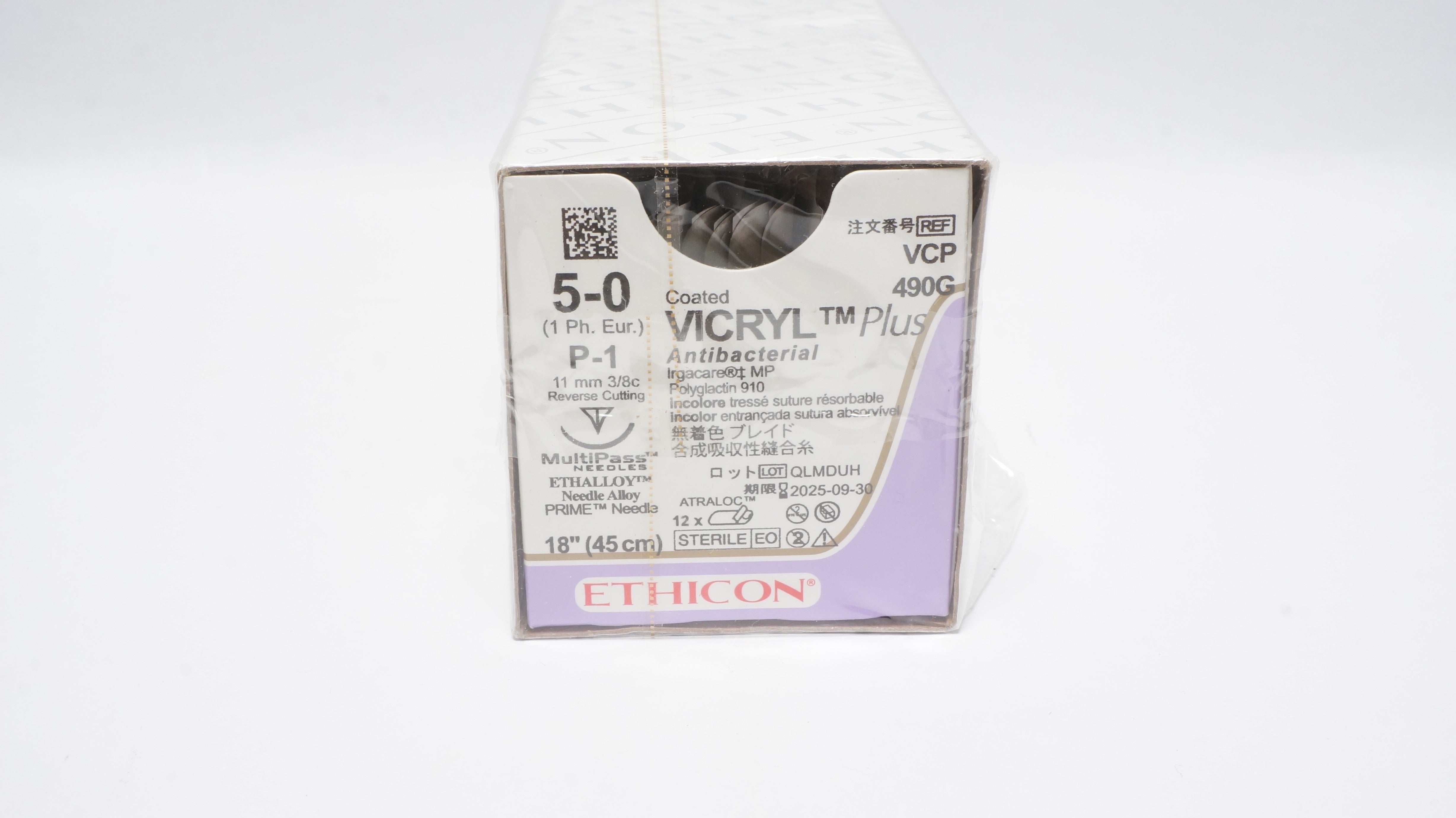 - Ethicon VCP490G VICRYL Plus, P-1, Undyed Braided 18 -Box of 12 (x)