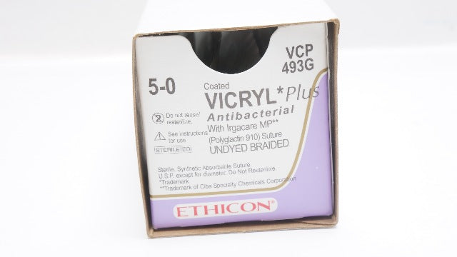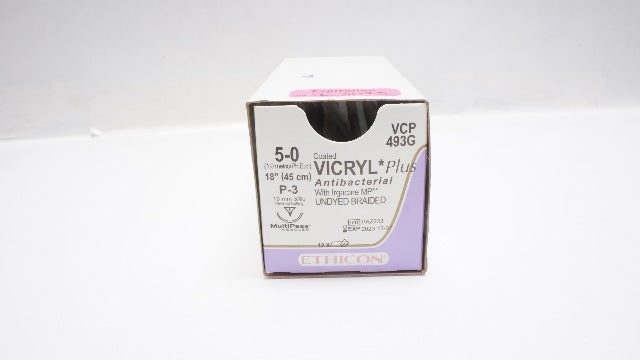 - Ethicon VCP493G VICRYL Plus, P-3, Undyed Braided 18inch (x) - Box of 9