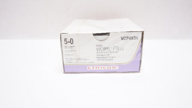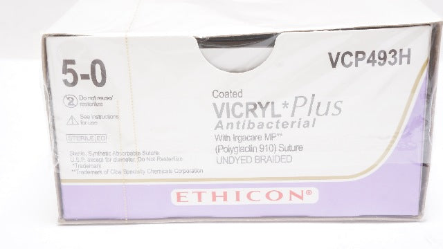 Ethicon VCP493H 5-0 Coated Vicryl Plus Antibacterial With Irgacare MP Polyglactin 910 Suture Undyed Braided P-3 13mm 3/8c ReverseCutting 18inch
