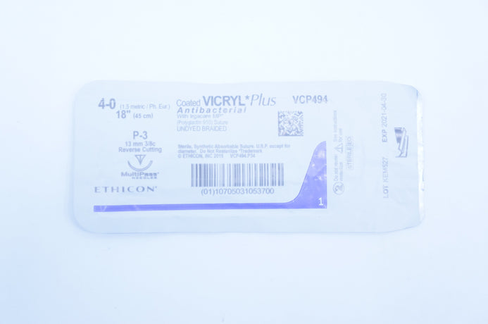 Ethicon VCP 494 Coated Antibacterial with Irgacare MP, Vicryl Plus Polyglactin 910 Suture Undyed Braided
