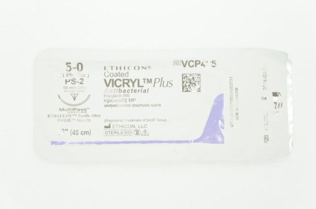 - Ethicon VCP495 5-0 VICRYL Plus PS-2 19mm 3/8c Reverse Cutting 18inch