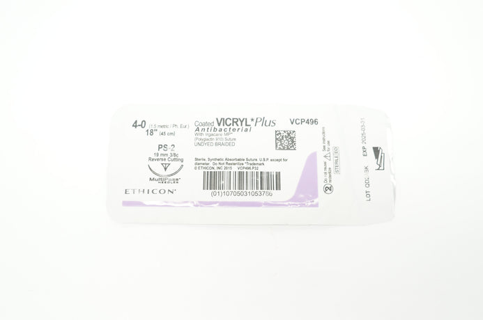 - Ethicon VCP496 4-0 Vicryl Plus Stre PS-2 Reverse Cutting 19mm 3/8c 18inch (x)