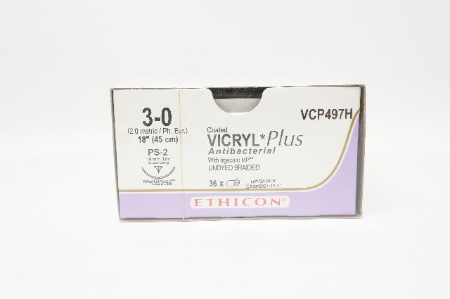 Ethicon VCP497H 3-0 VICRYL Plus PS-2 19mm 3/8c Reverse Cutting 18in.
