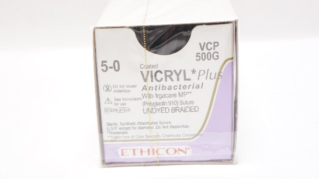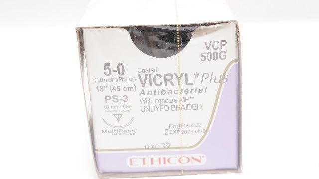 Ethicon VCP500G 5-0 Coated VICRYL Plus Antibacterial with Irgacare MP Polyglactin 910 Suture Undyed Braided PS-3 16mm 3/8c Reverse Cutting 18inch