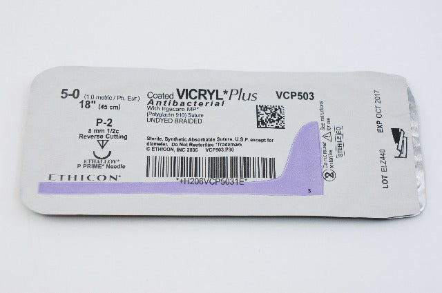 Ethicon VCP503 5-0 VICRYL Plus, P-2, 8mm 1/2c, 18inch (x)