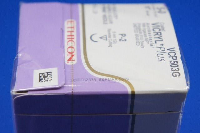 Ethicon VCP503G VICRYL Plus, P-2, Undyed Braided 18 - Box of 12