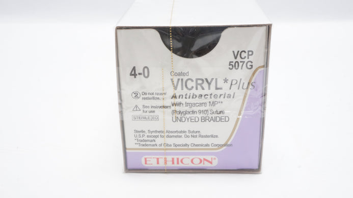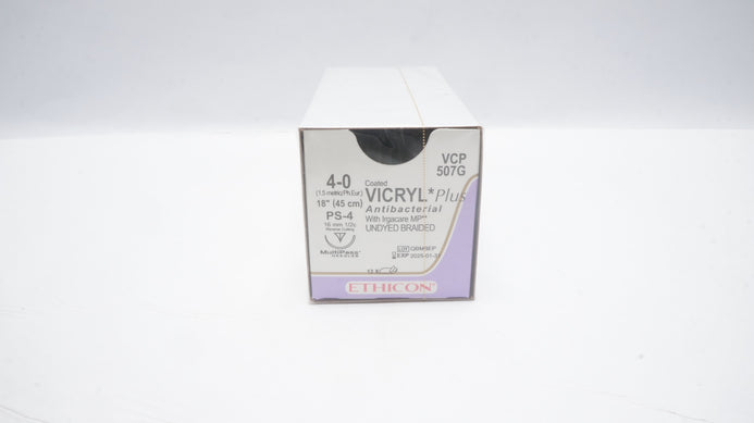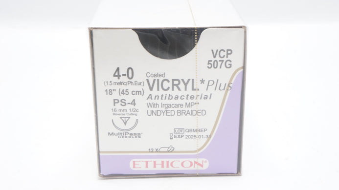 Ethicon VCP507G 4-0 Coated VICRYL Plus UNDYED 18inch Stre., PS-4 16mm Ndle.