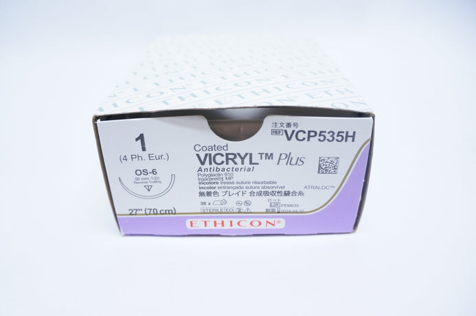 Ethicon VCP535H 1 VICRYL Plus, Antibacterial, OS-6, 36mm 1/2c, 27inch - Box of 36
