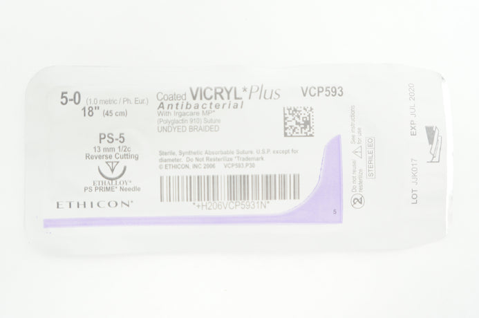Ethicon VCP593 5-0 VICRYL Plus, PS-5, 13mm 1/2c Reverse Cutting, 18inch (x)