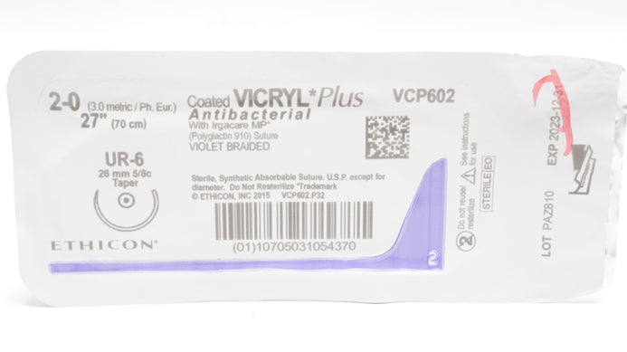 Ethicon VCP602 2-0 VICRYL Plus Stre W/ Irgacare MP, UR-6 26mm 5/8c Taper, 27inch