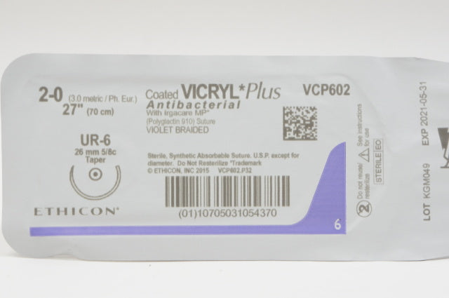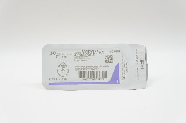 - Ethicon VCP602 2-0 VICRYL Plus, UR-6, 26mm 5/8c Taper, 27inch