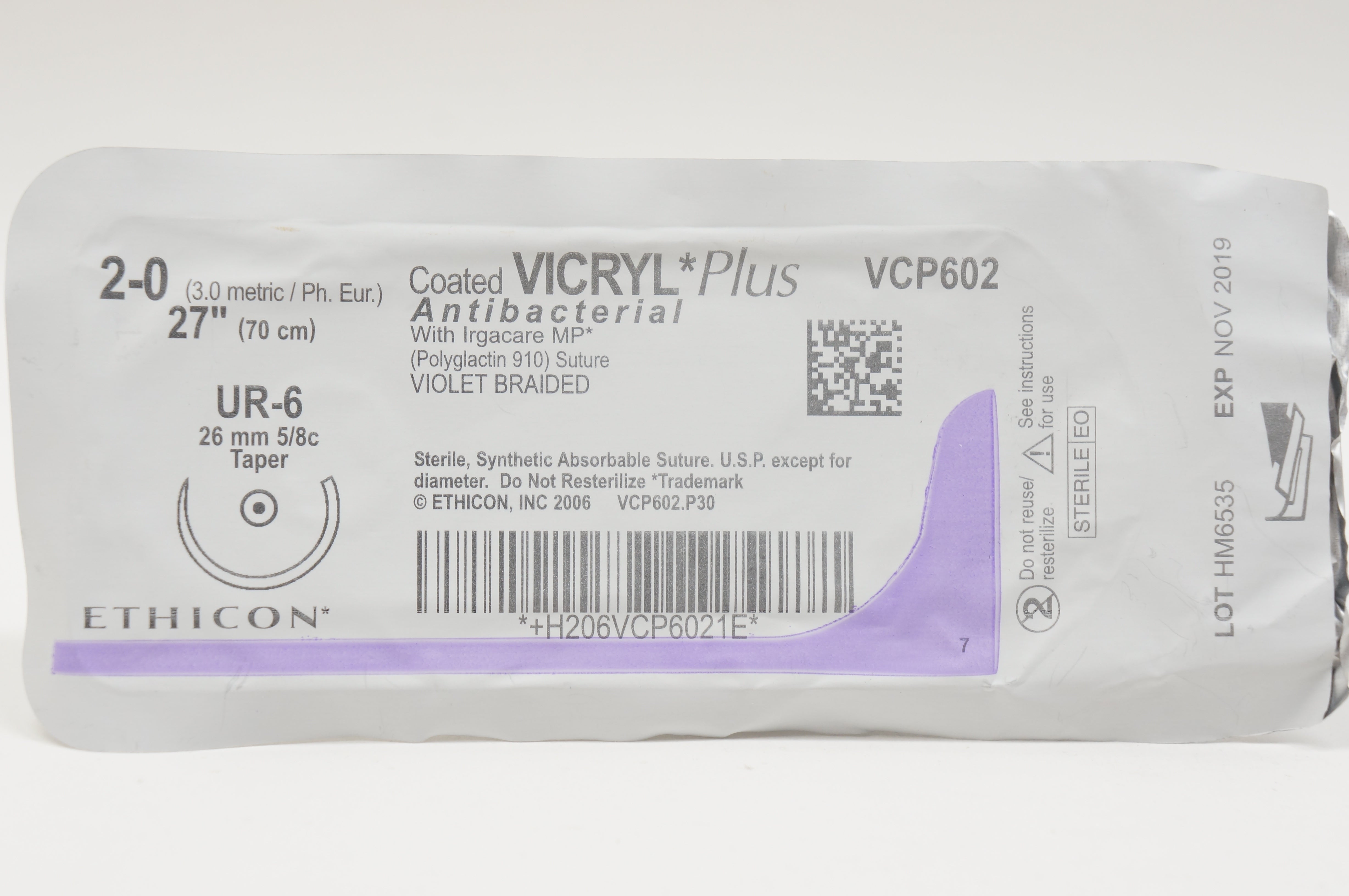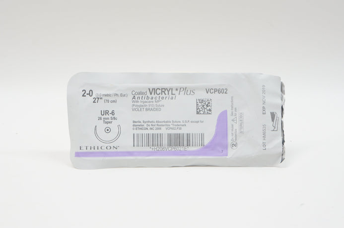 - Ethicon VCP602 2-0 VICRYL Plus, UR-6, 26mm 5/8c Taper, 27inch (x)
