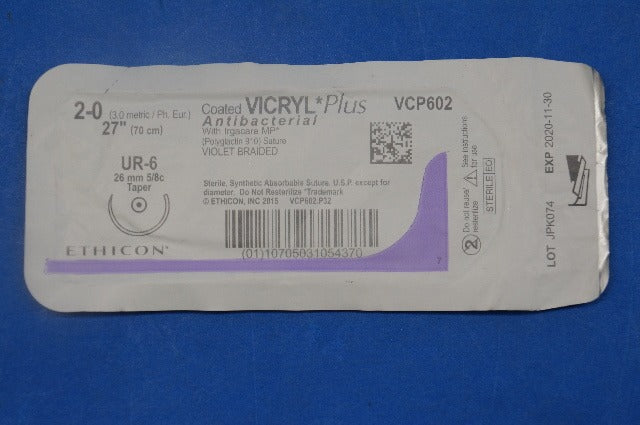 Ethicon VCP602 2-0 VICRYL Plus, UR-6 26mm 5/8c Taper, Violet Braided, 27