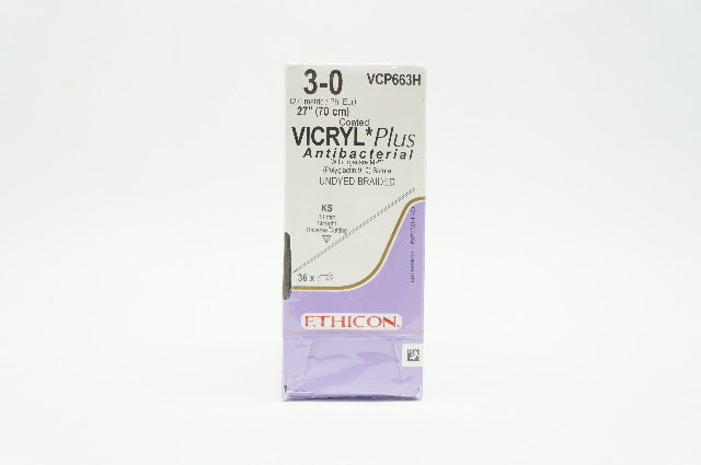- Ethicon VCP663H 3-0 VICRYL Plus Undyed Braided KS 60mm 27 inch - Box of 36
