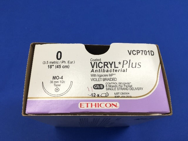 Ethicon VCP701D Coated VICRYL Plus MO-4 8-18 - Box of 11