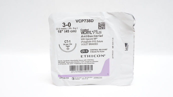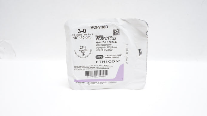 Ethicon VCP738D 3-0 Vicryl Plus Stre CT-1 36mm 1/2c Taper 18inch