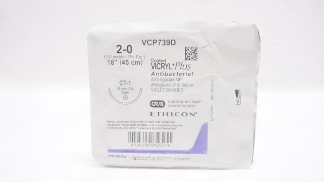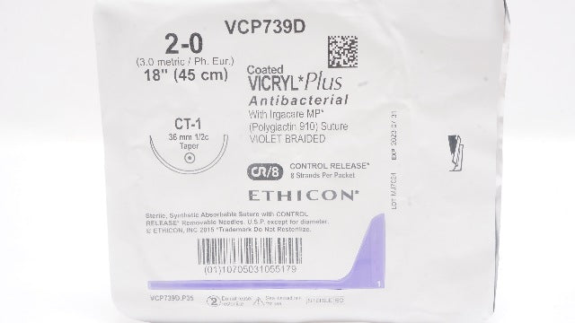 - Ethicon VCP739D 2-0 VICRYL Plus Polyglactin Stre CT-1 36mm 1/2c Taper 18 inch(x)