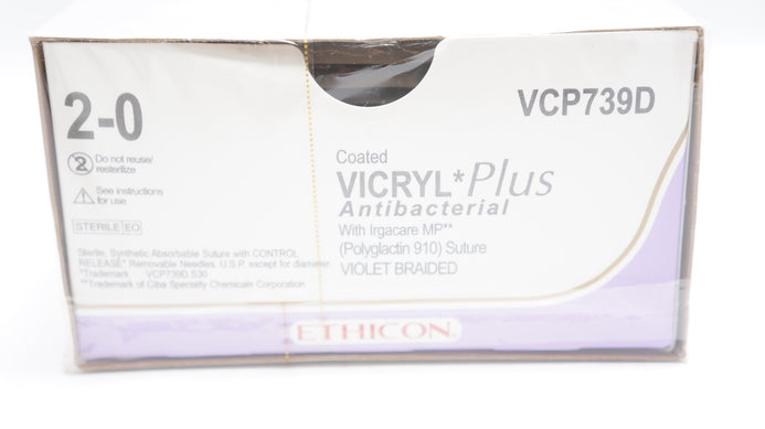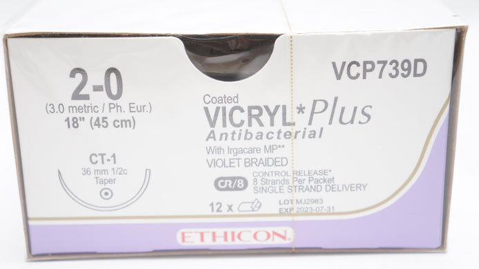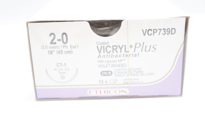 - Ethicon VCP739D 2-0 VICRYL Plus Stre CT-1 36mm 1/2c Taper 18inch (x) - Box of 12