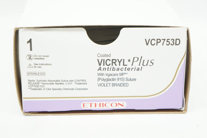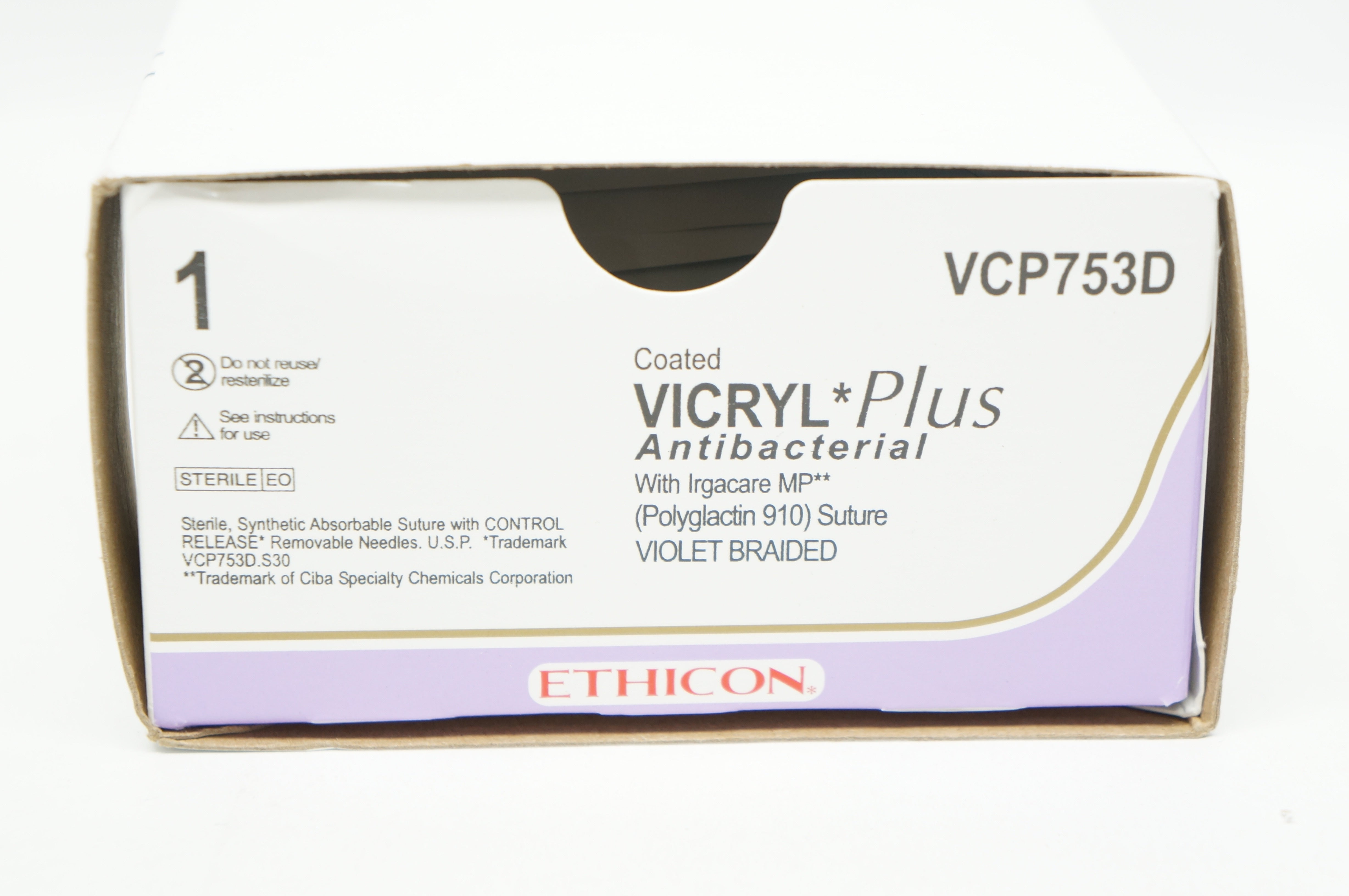 Ethicon VCP753D 1 Coated VICRYL Stre CT 40mm 1/2c Taper, 18inch - Box of 12