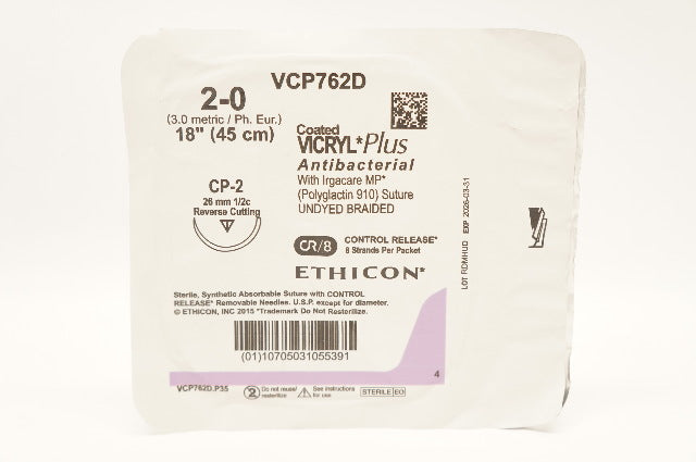 - Ethicon VCP762D 2-0 Coated VICRYL Plus Stre CP-2 26mm 1/2c 18inch
