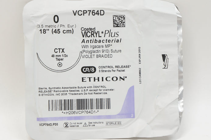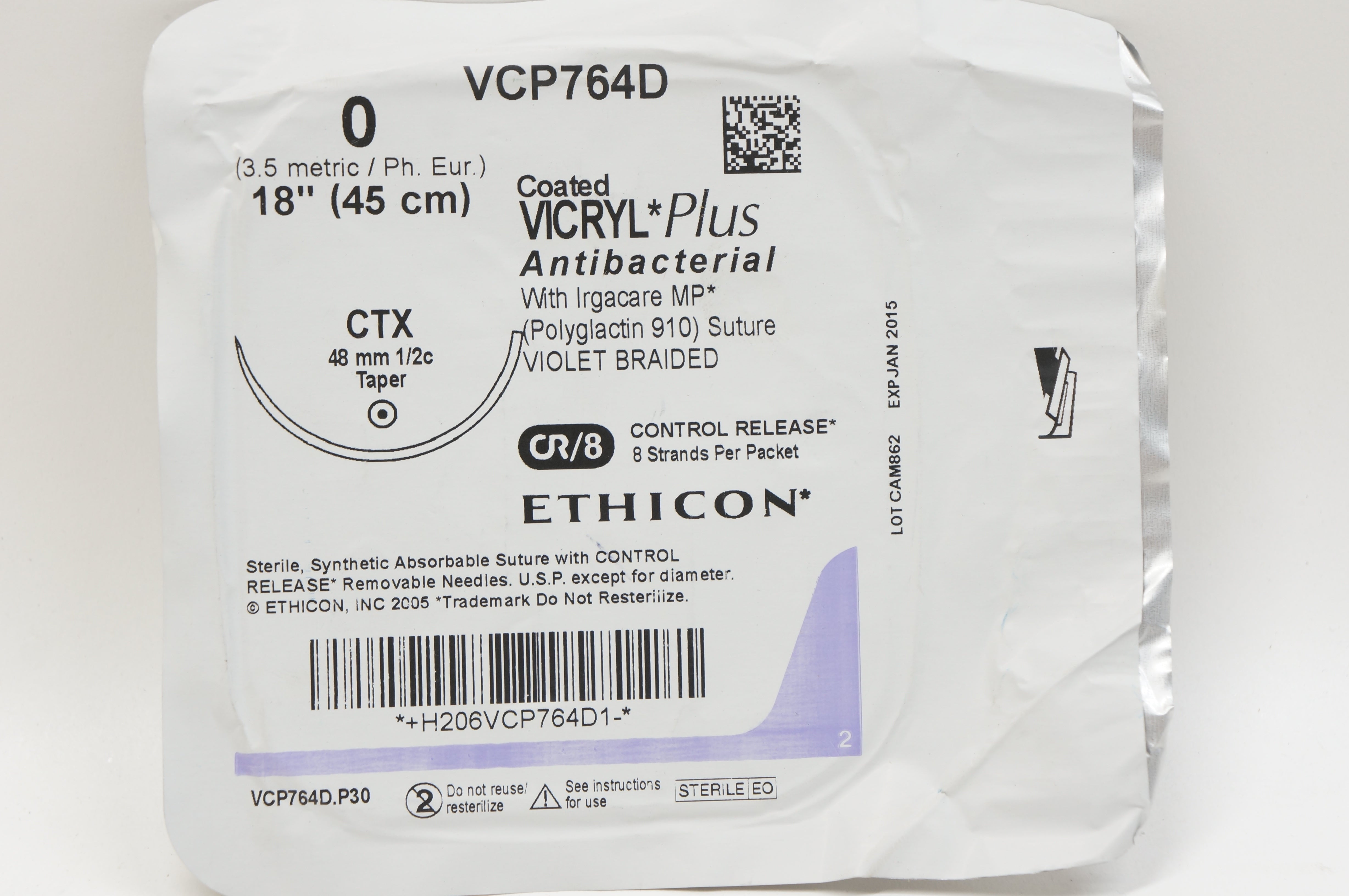 - Ethicon VCP764D 0 VICRYL Plus, CTX, 48mm 1/2c Taper, 18inch (x)