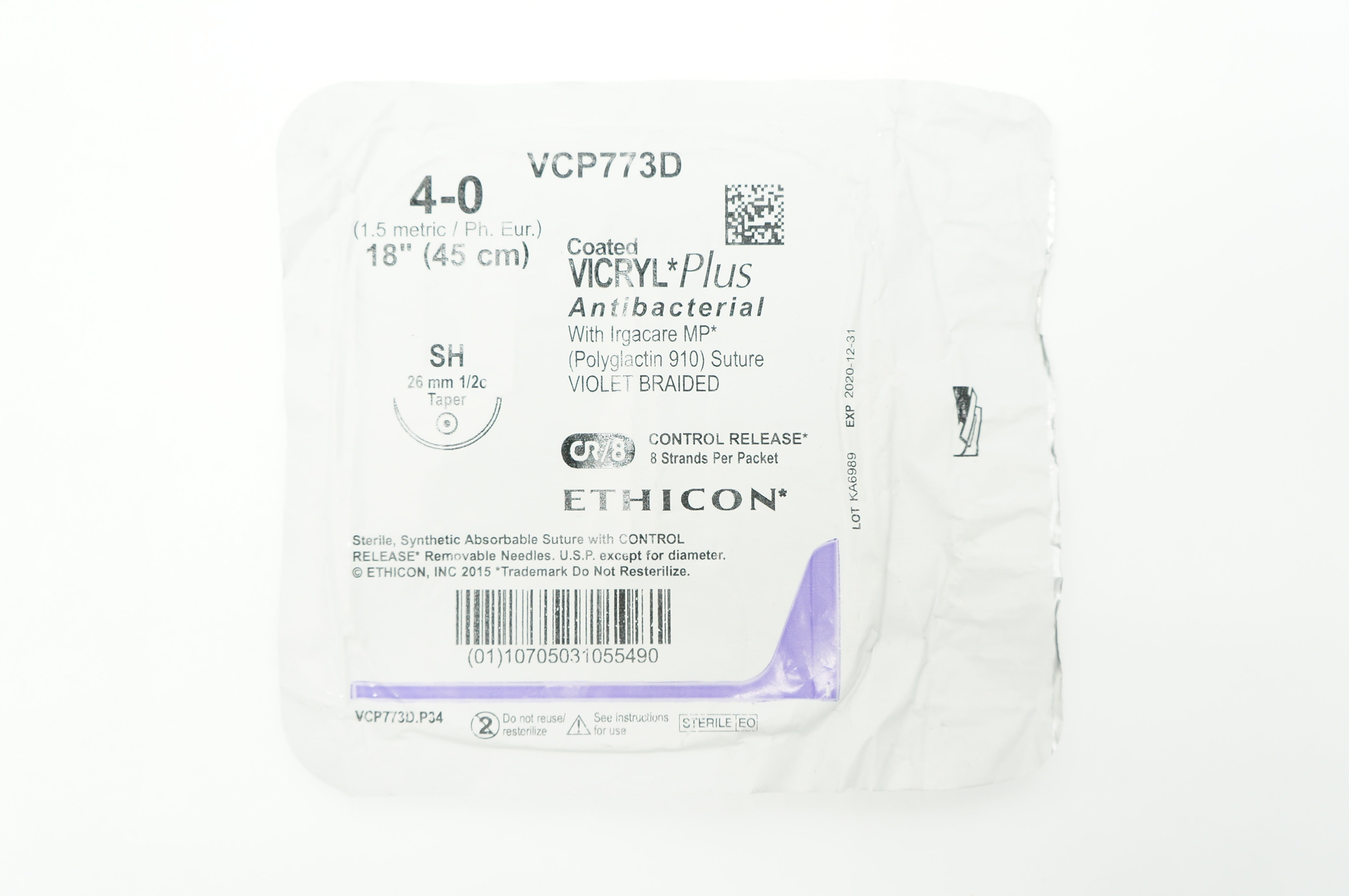 - Ethicon VCP773D 4-0 VICRYL Plus SH 26mm 1/2c Taper 18 inch (x)