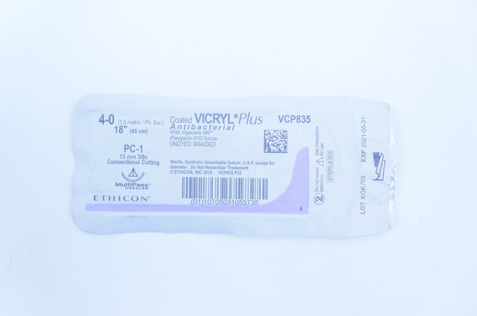 Ethicon VCP835 4-0 Antibacterial Vicryl Stre. Undyed Braided 18inch, P-3 (x)