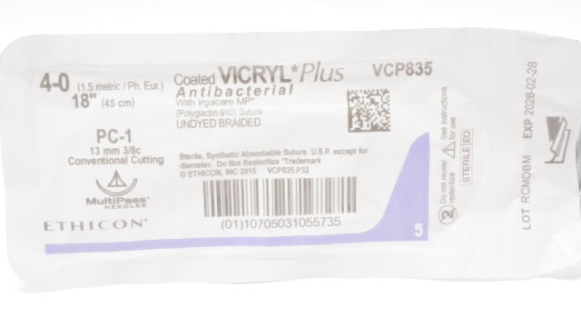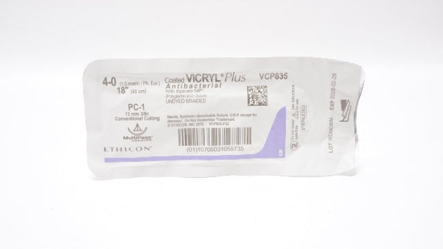- Ethicon VCP835 4-0 Coated Vicryl Stre PC-1 13mm 3/8c Conventional Cutting 18inch