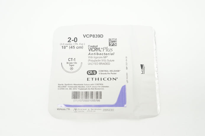 - Ethicon VCP839D 2-0 Coated Vicryl Plus CT-1 36mm 1/2 Taper 18inch - Pack of 8(x)