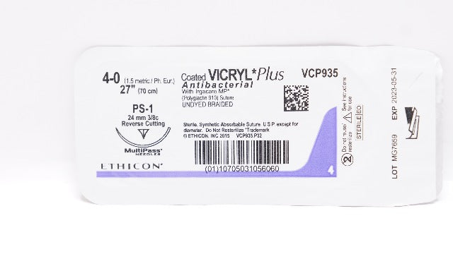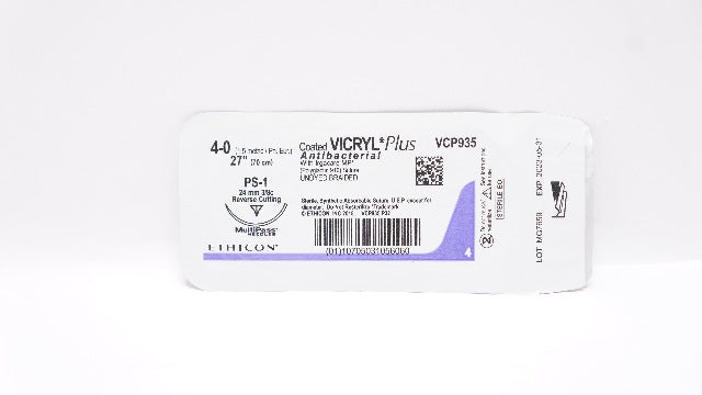 - Ethicon VCP935 4-0 Vicryl Plus Stre PS-1 24mm 3/8c Reverse Cutting 27inch (x)