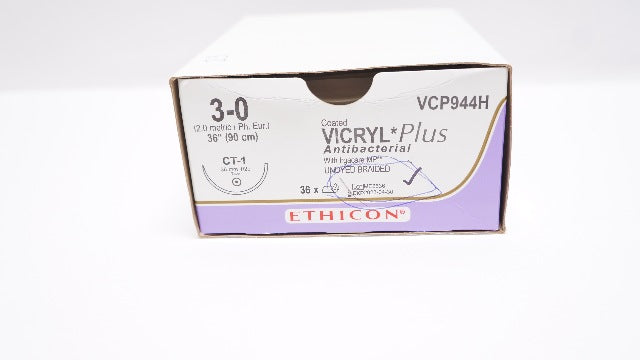 - Ethicon VCP944H 3-0 Coated VICRYL Plus, CT-1 36mm 1/2c Taper, 36in (x)-Box of 23