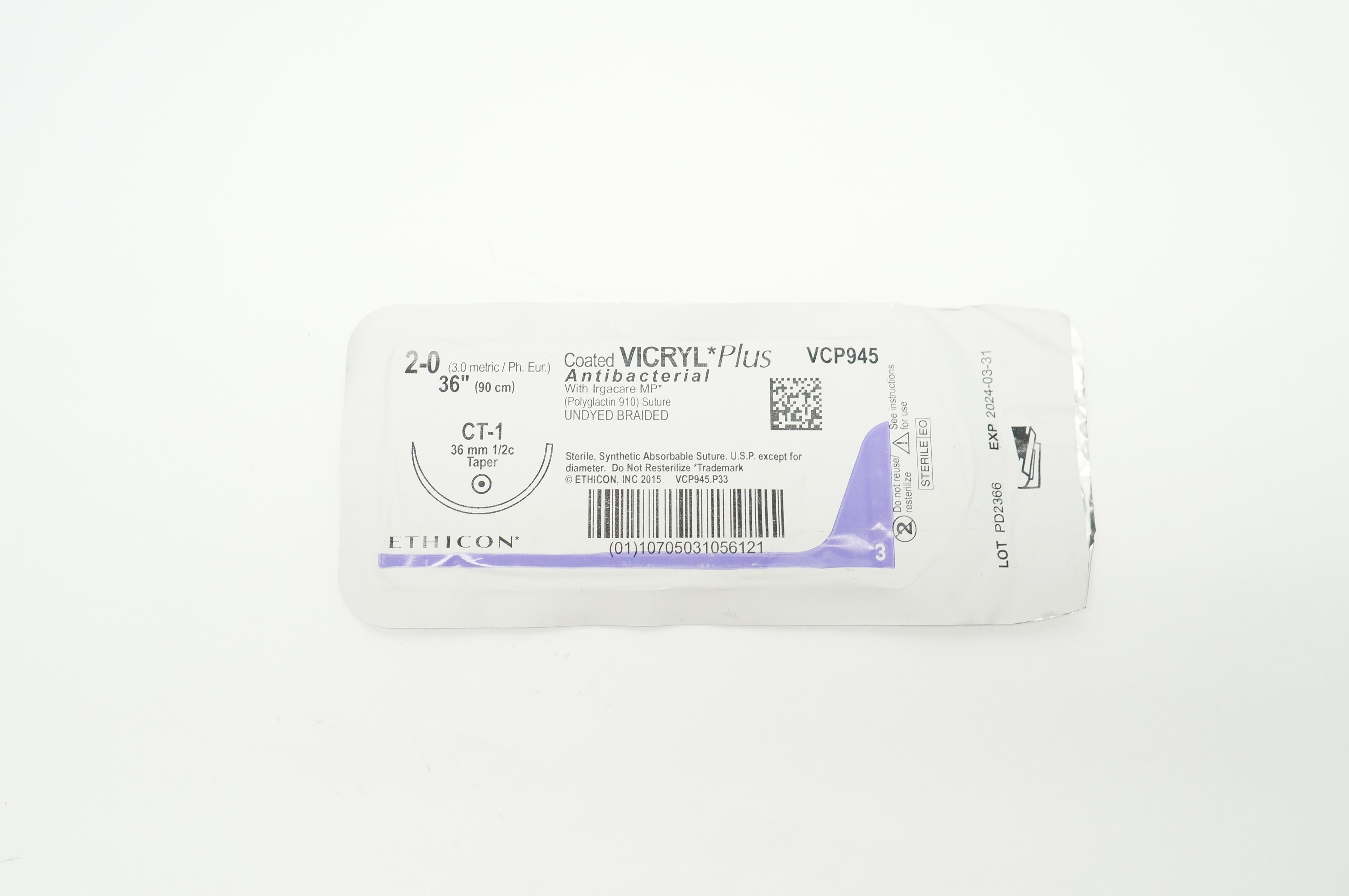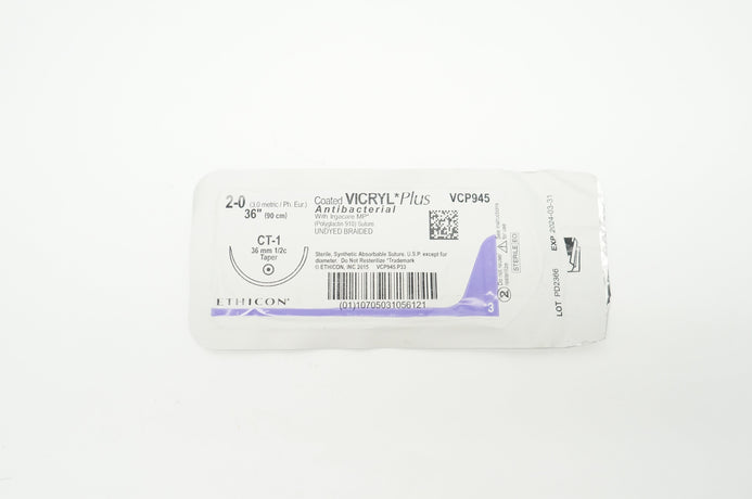 - Ethicon VCP945 2-0 VICRYL Plus CT-1 36mm 1/2c Taper 36inch (x)