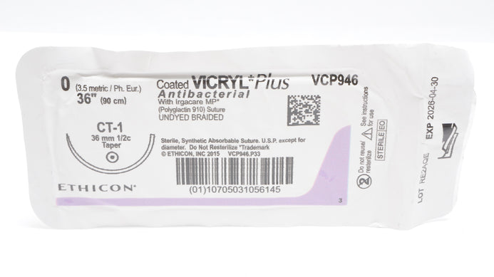 - Ethicon VCP946 0 Coated VICRYL Plus Stre CT-1 36mm 1/2c Taper 36inch (x)