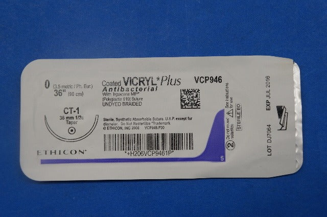 - Ethicon VCP946H 0 VICRYL Plus, CT-1 36mm 1/2c Taper, 36 -Box of 26