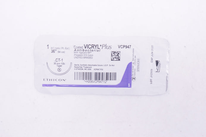 - Ethicon VCP947 1 VICRYL Plus, CT-1, 36mm 1/2c Taper, 36inch (x)