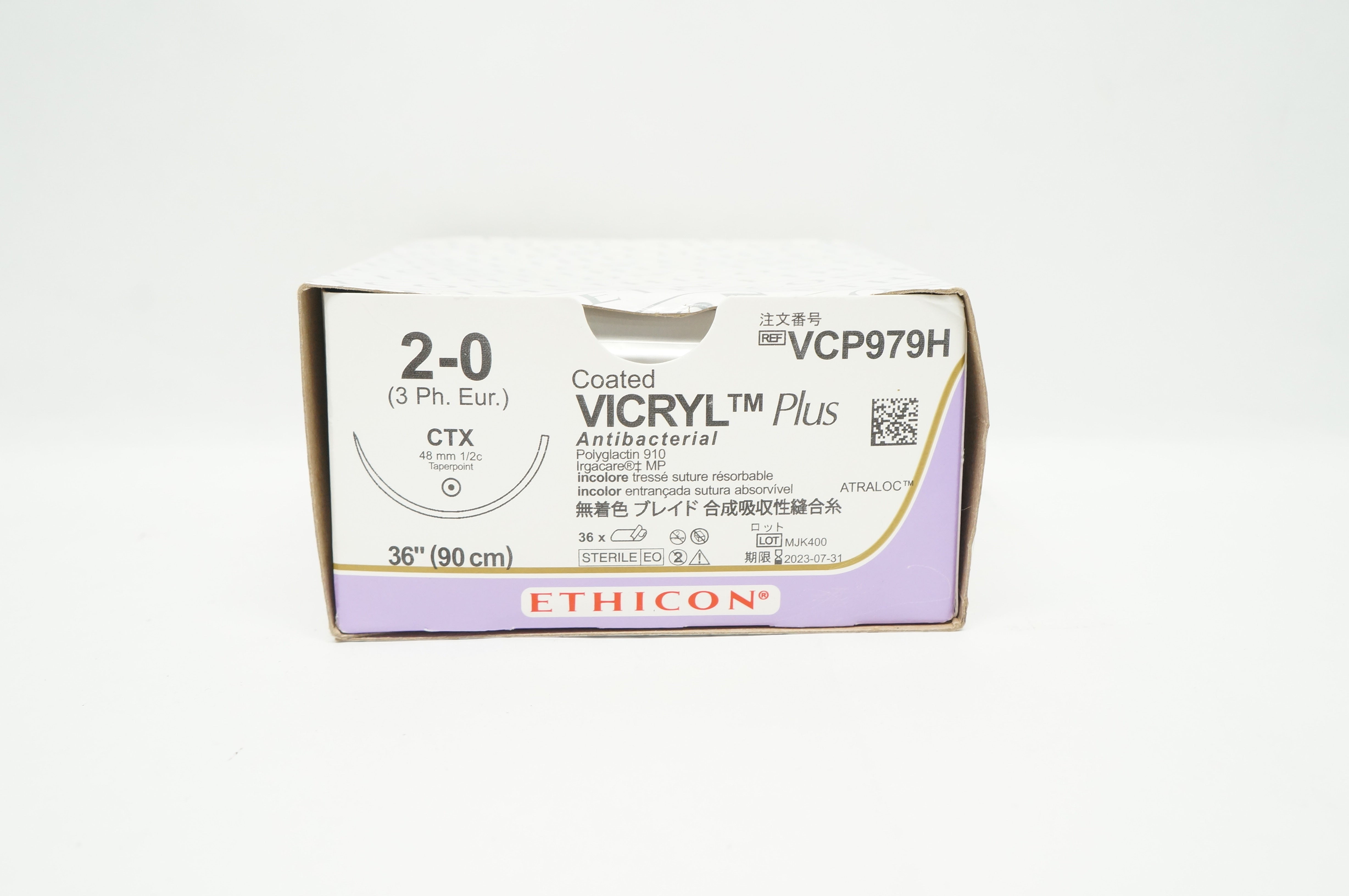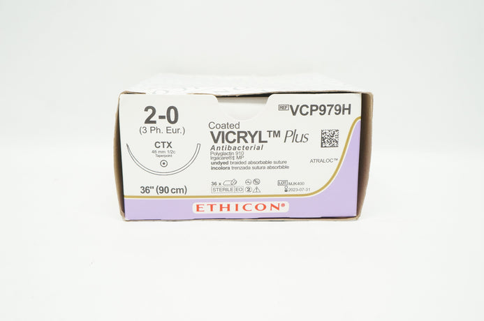 - Ethicon VCP979H 2-0 VICRYL Plus CTX 48mm 1/2c 3 Taper 36inch - Box of 36
