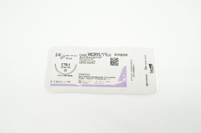 - Ethicon VCPB259 2-0 Coated Vicryl Plus Antibacterial CTB-1 36mm 1/2c, 27inch