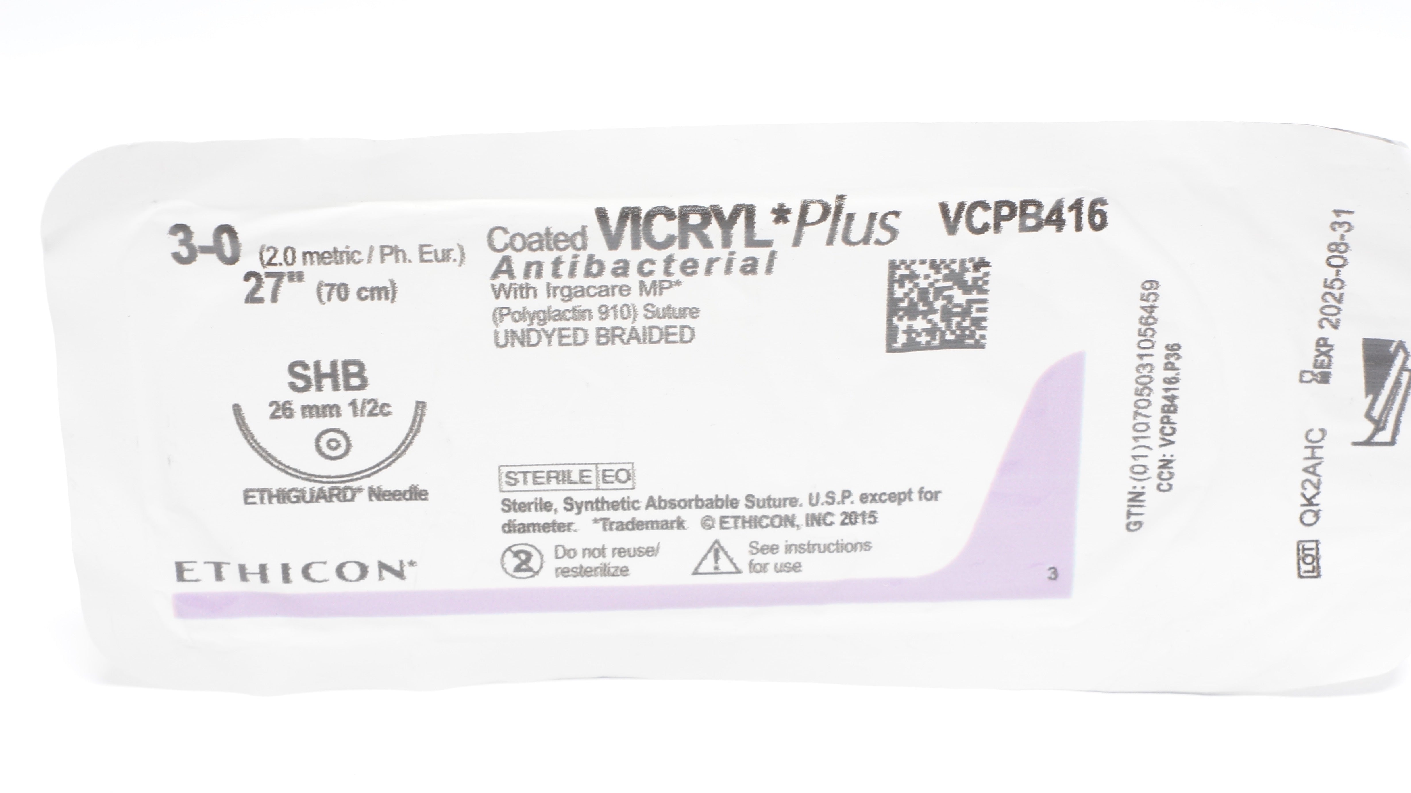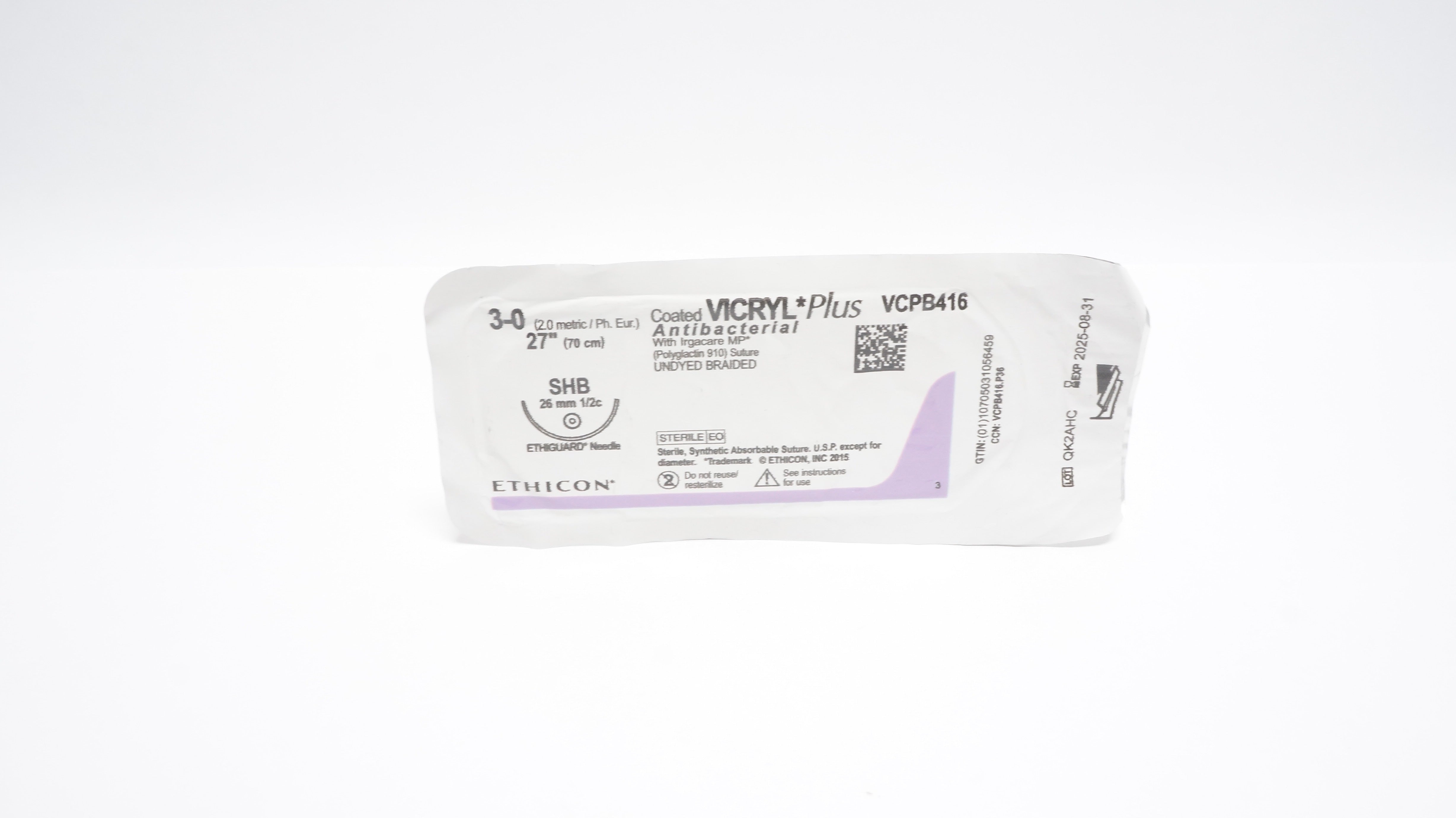- Ethicon VCPB416 3-0 Coated VICRYL Plus 27in Stre. SFB 26mm 1/2c Ndle. (x)