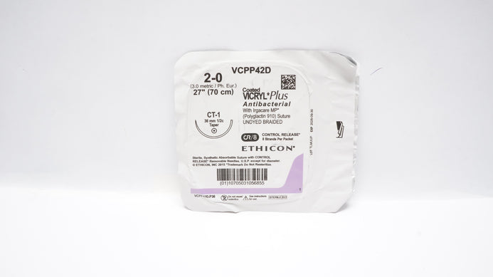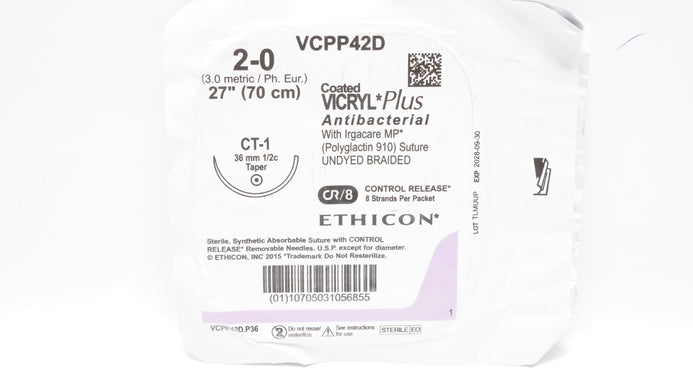- Ethicon VCPP42D 2-0 Vicryl Plus Polyglactin Stre CT-1 36mm 1/2c Taper 27inch