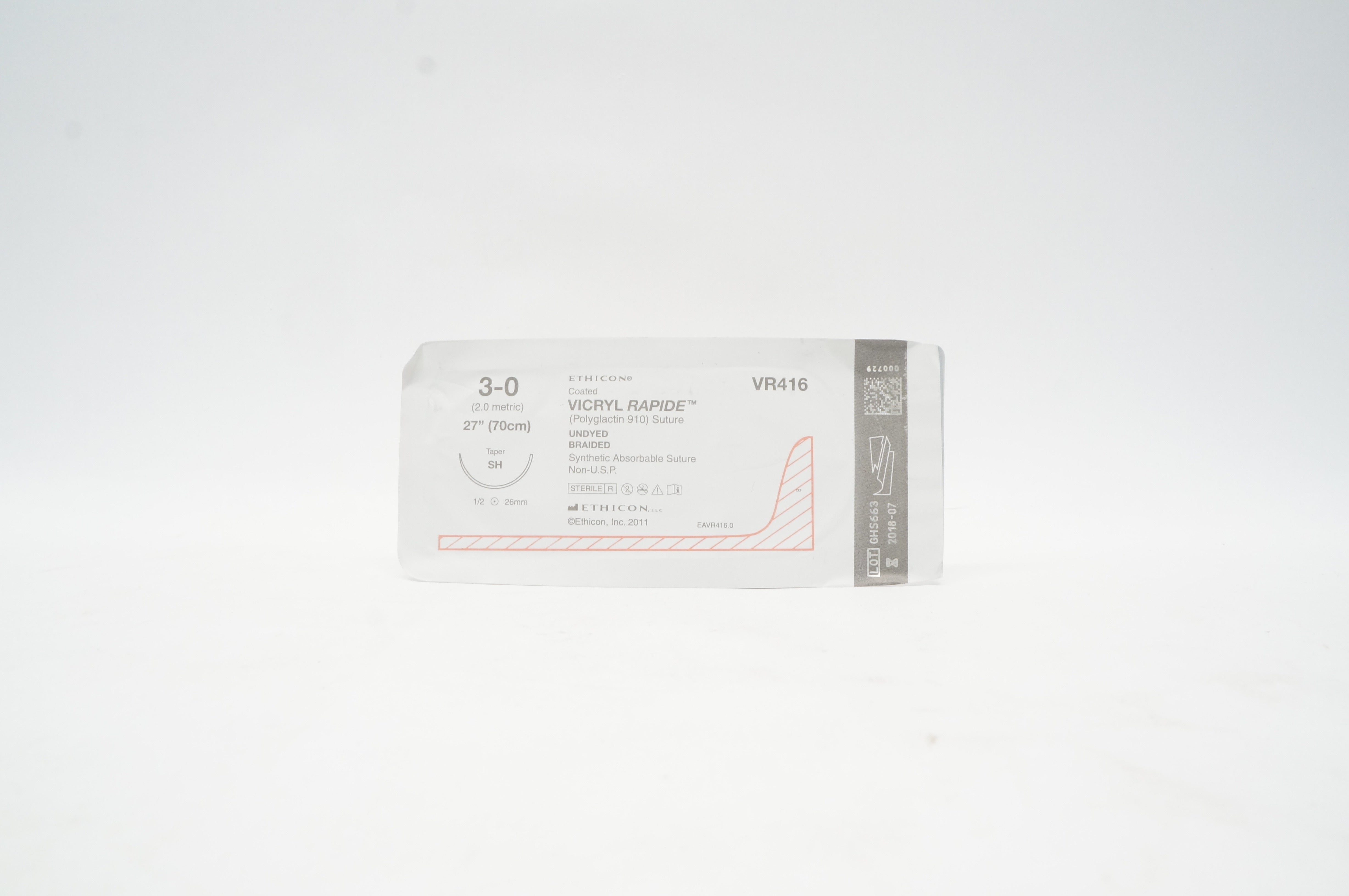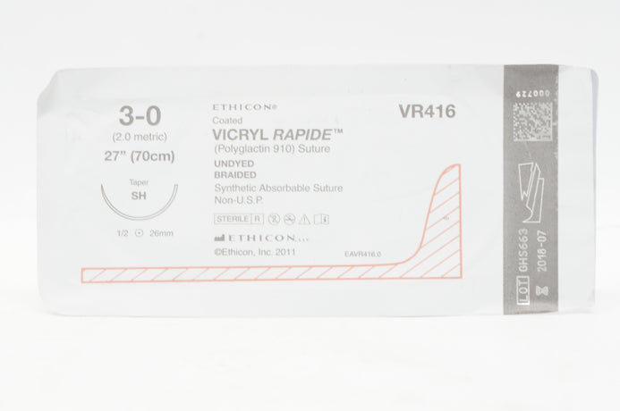 - Ethicon VR416 3-0 Vicryl Rapide Polyglactin 910 Stre, SH 1/2 26mm, 27 inch (x)