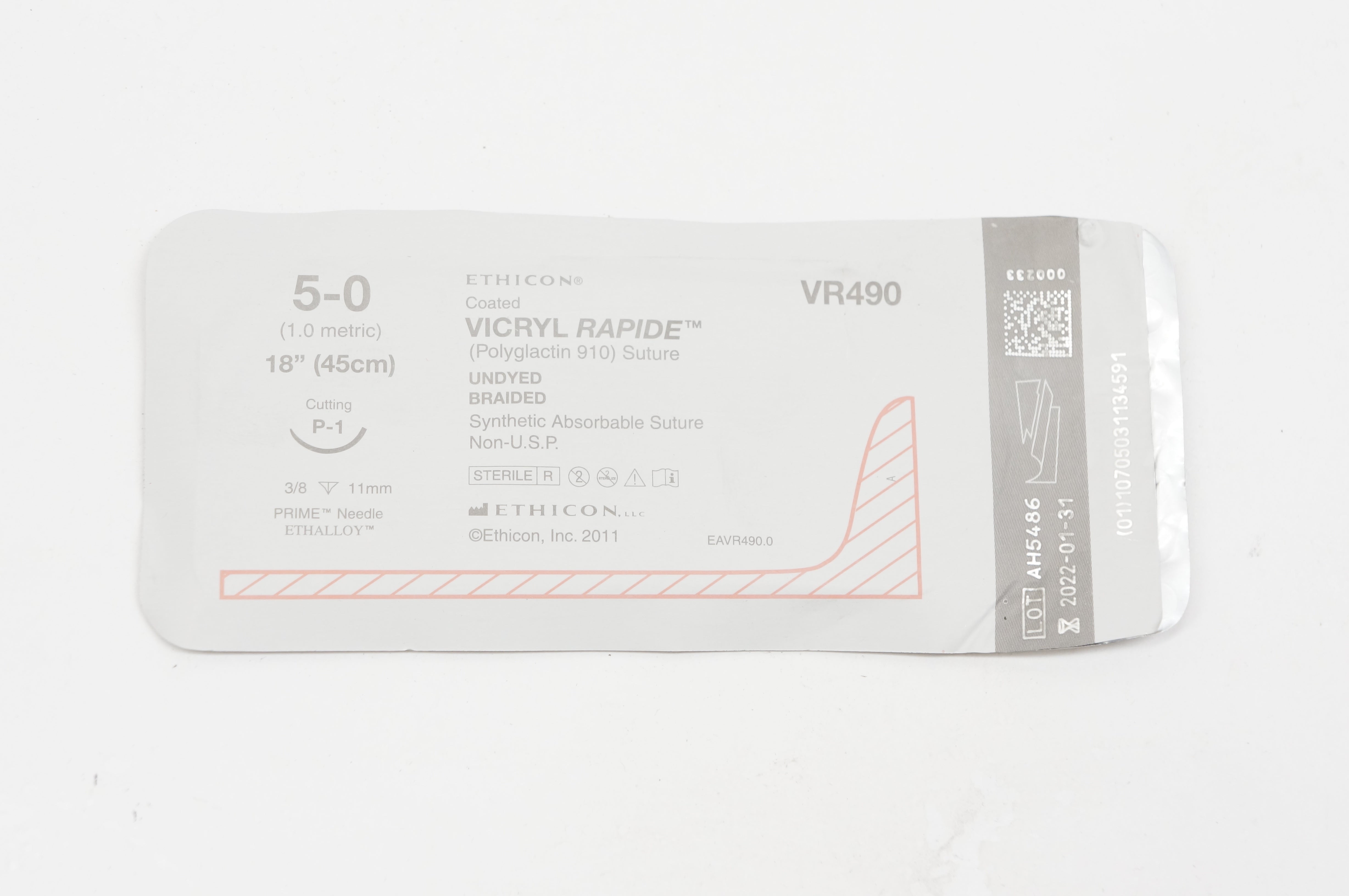 - Ethicon VR490 5-0 VICRYL, P-1, 3/8 11mm, 18inch - Box of 12