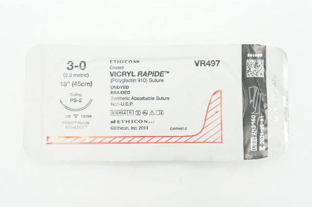 - Ethicon VR497 3-0 VICRYL RAPIDE, PS-2, 3/8 19mm, 18inch