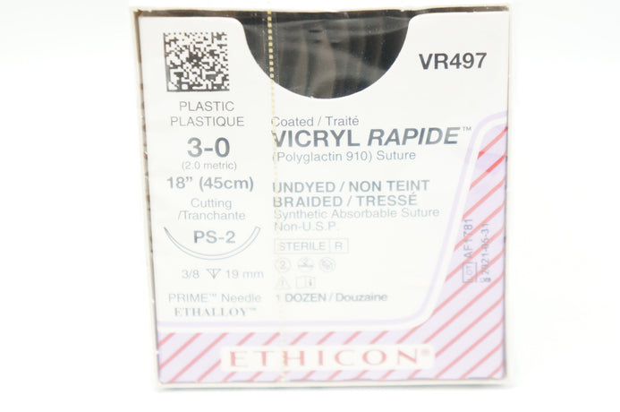 - Ethicon VR497 3-0 VICRYL RAPIDE PS-2 3/8 19mm Cutting, 18inch - Box of 12 (x)