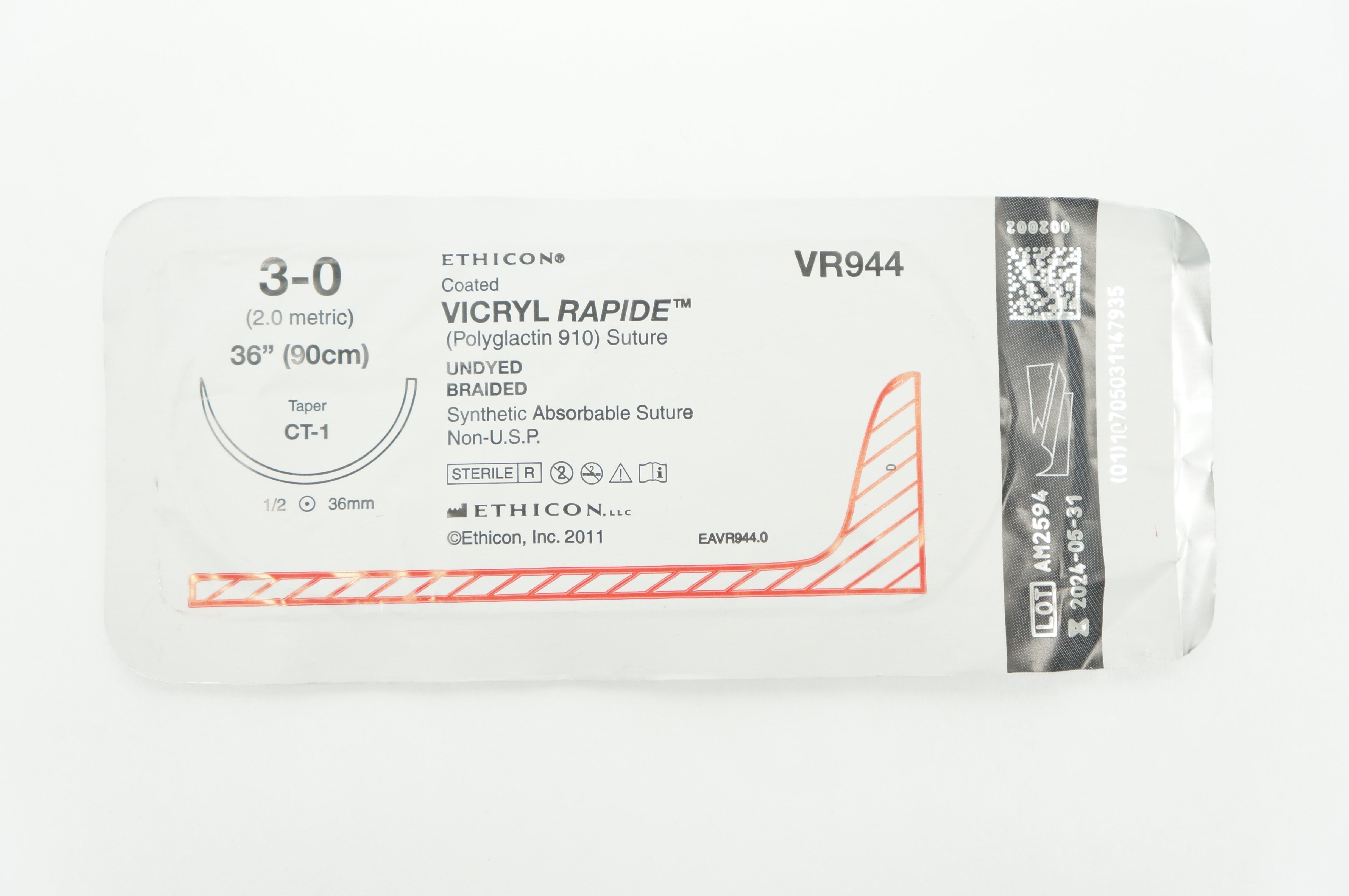 - Ethicon VR944 3-0 VICRYL RAPIDE, CT-1, 1/2 36mm, 36inch