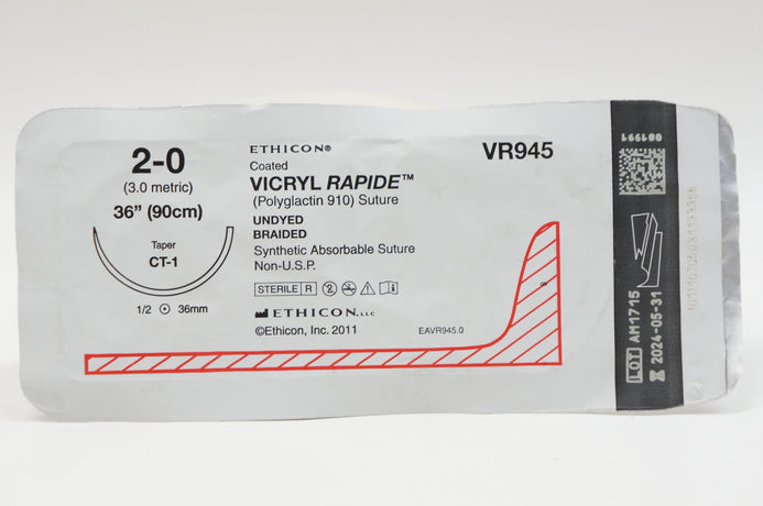- Ethicon VR945 2-0 VICRYL RAPIDE, CT-1 Taper, 1/2 36mm, 36inch
