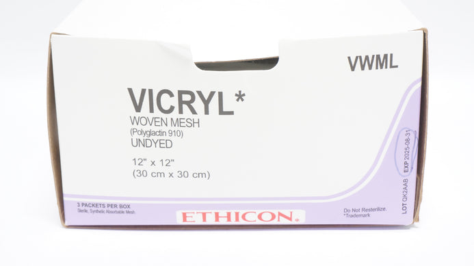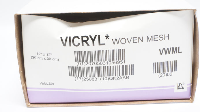 - Ethicon VWML VICRYL Woven Mesh Polyglactin 910 Undyed 12 x12in- Box of 2