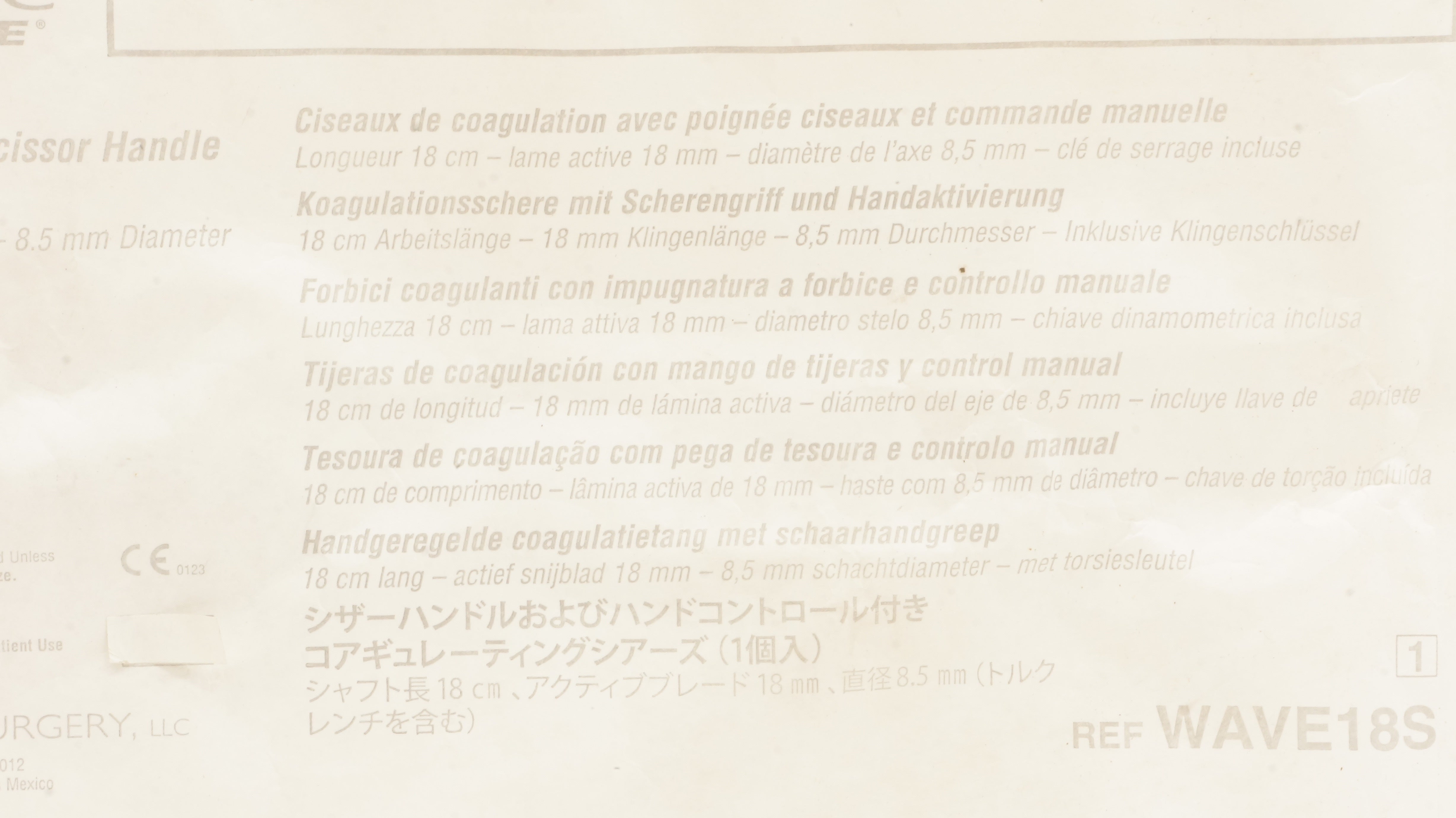 - Ethicon WAVE18S Harmonic Wave Coagulating Shears 8.5mm x 18cm x 18mm (x)