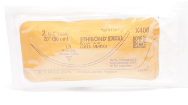Ethicon X406 2 Ethibond Excel Stre LR 75mm 3/8c Reverse Cutting, 20 inch (x)