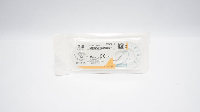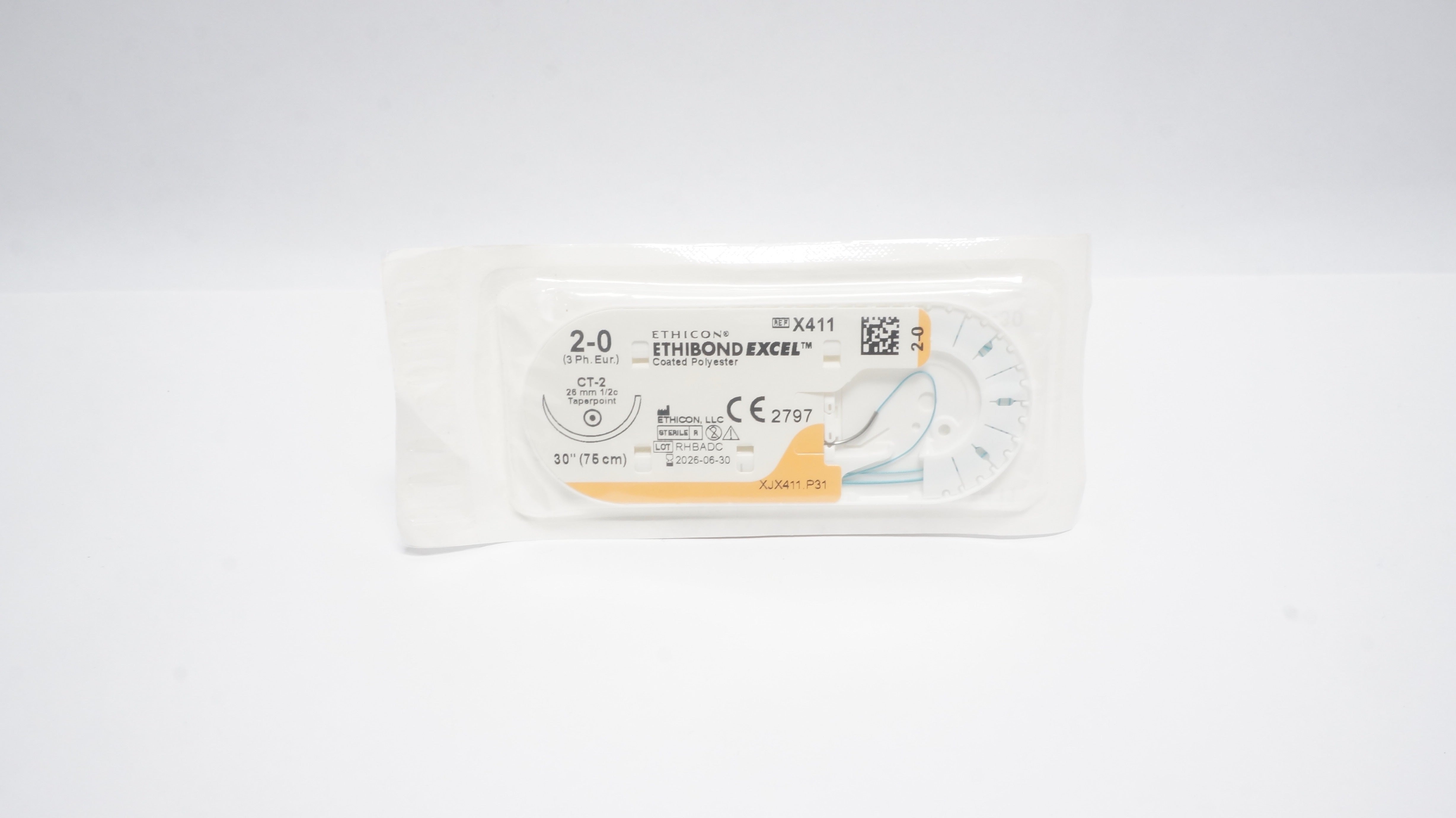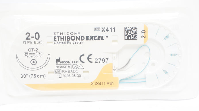 - Ethicon X411 2-0 ETHIBOND EXCEL, CT-2, 26mm 1/2c Taperpoint, 30inch
