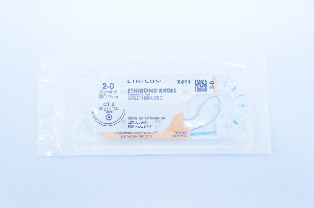 - Ethicon X411 2-0 ETHIBOND EXCEL Polyester Stre CT-2, 26mm 1/2c Taper 30inch (x)
